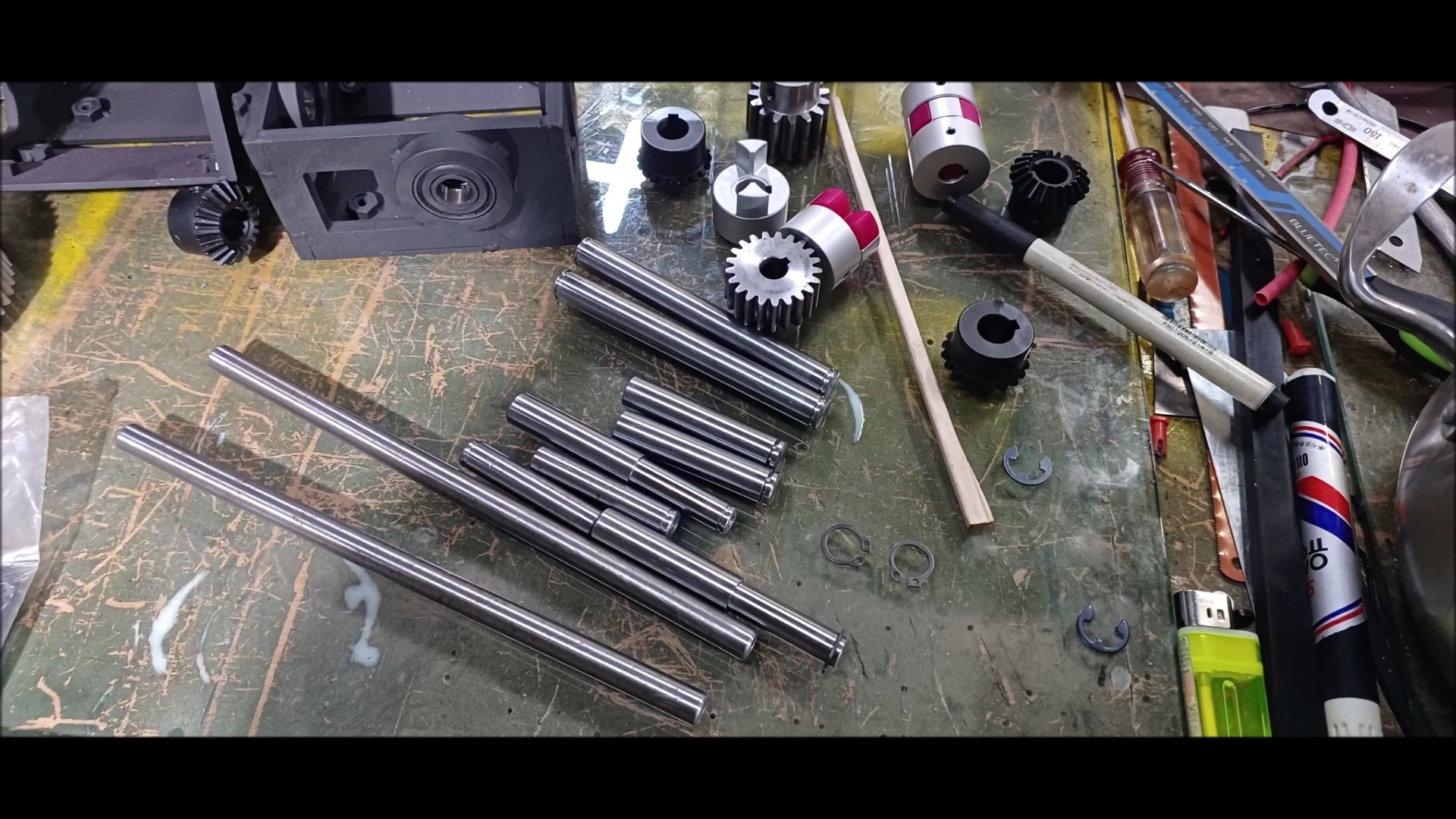 Process the round bar that connects the various safts and create a snap ring